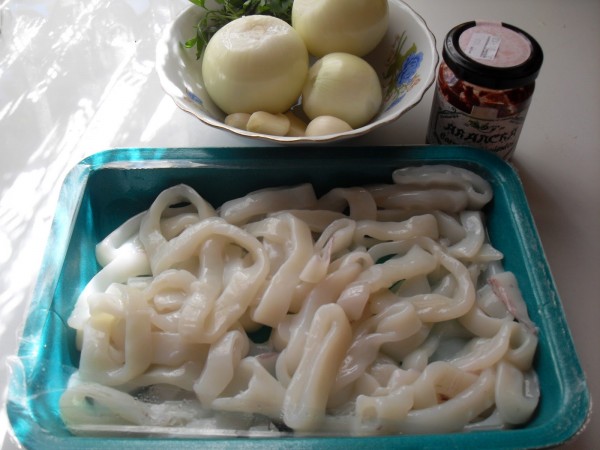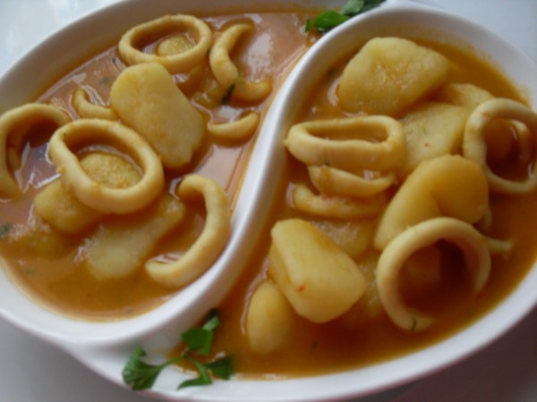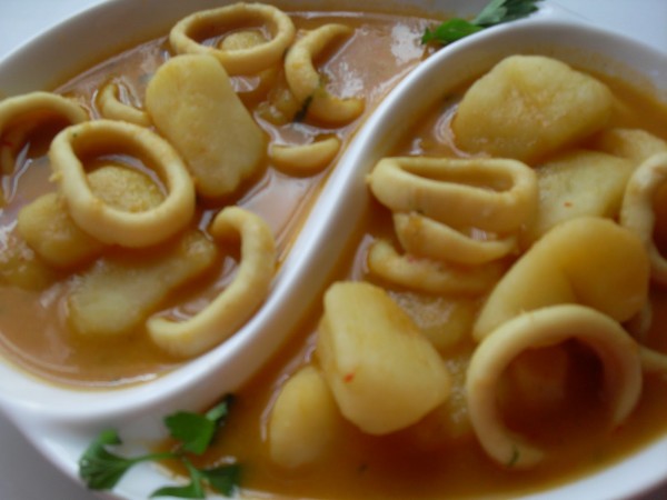 CALAMARES,CEBOLLA, CARNE PIMIENTO CHORICERO, AJOS Y PEREJIL
