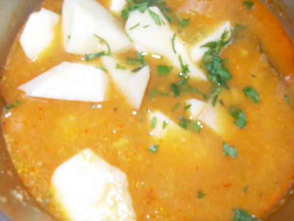 Muy rica de sabor, quizá un pelín salada, yo revisaría un poquito la cantidad de sal, y cuidado con los tiempos de cocción al echar la patata, a mí se me han deshecho todas! Mejor programar menos e ir viendo.