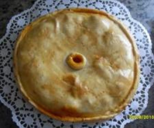 ESTIRAR LA MASA, PONER EL RELLENO, SELLAR, Y PINCELAR CON HUEVO BATIDO, HACER UNA CHIMENEA EN EL CENTRO, PARA QUE NO SE HINCHE LA MASA.