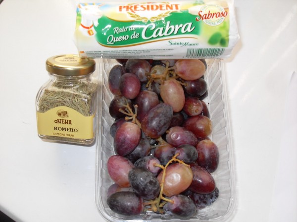 UVAS SIN PEPITAS (LA 1ª VEZ QUE LAS HE COMPRADO, NI SABIA QUE EXISTÍAN), ROMERO SECO Y QUESO DE CABRA.