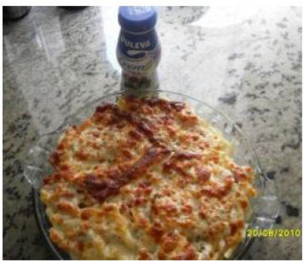 Poner la pasta en una fuente, la salsa por encima, y cubrir con lonchas de queso semicurado. gratinar 5 min. hasta que esté dorado.