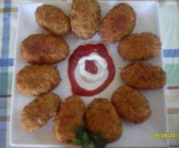 COGER PORCIONES CON UNA CUCHARA, FORMAR COMO CROQUETAS GIGANTES Y APLASTARLAS UN POCO. IR PASANDO POR HUEVO Y PAN RALLADO GRUESO Y FREÍR A FUEGO MEDIO-FUERTE EN ABUNDANTE ACEITE, HASTA QUE ESTÉN DORADOS.