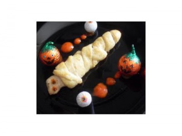 tomate o ketchup para acompañar, y hacer los ojitos, y clavos de olor.