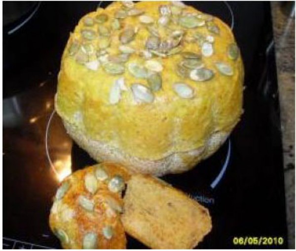 *Horno precalentado,220º 40 min., cuando lleve 30 min. pincelar con el huevo,mezclado con la leche y esparcir las pipas.