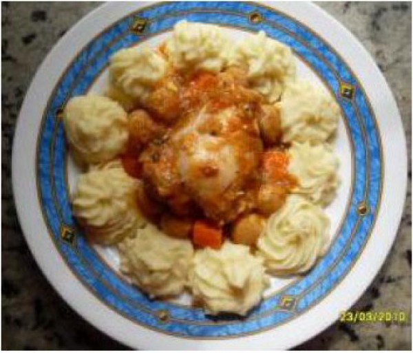 Pollo guisado con puré de patatas