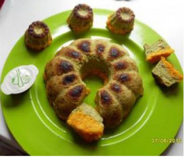En cada puré,añadir dos yemas, la mitad del queso, y dos claras a punto de nieve., mezclar con movimientos envolventes. echar en un molde de silicona o unos pequeños, y horno precalentado 30 a 35 min. pinchar con una aguja si sale limpia ya está. dejar en el horno un poco con la puerta abierta para que no se bajen.