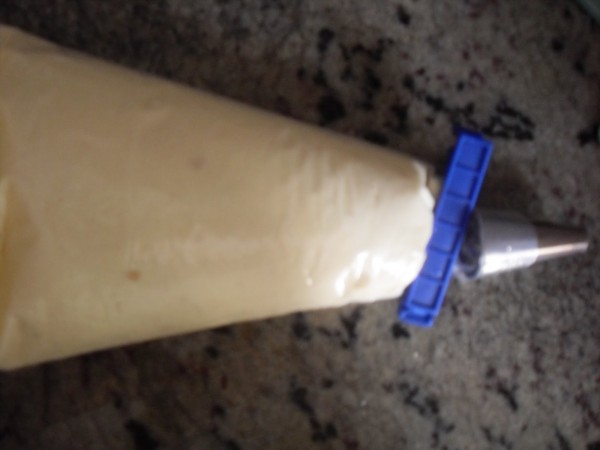 Meter la masa en una manga con boquilla lisa, o también se puede hacer a cucharadas, formando círculos, dejar una separación entre ellas, pues crecen y se podrían pegar unas a otras. espolvorear con azúcar.