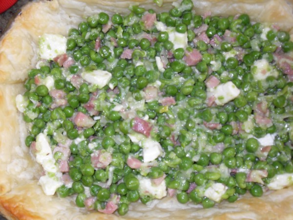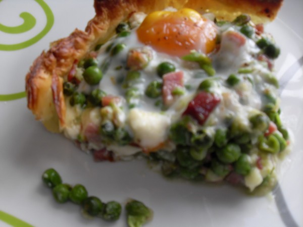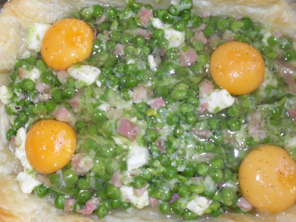TARTALETA DE GUISANTES, JAMÓN Y HUEVOS