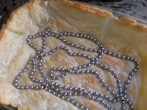 1-HORNEAR EL HOJALDRE, CON UN PESO ENCIMA Y PINCHÁNDOLO, PARA QUE NO HINCHE, HORNO PRECALENTADO A 210º UNOS 15 MINUTOS. RESERVAR.