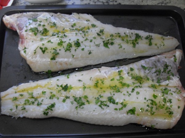 PESCADO SALPIMENTADO, CON UN CHORRO DE ACEITE OLIVA Y PEREJIL
