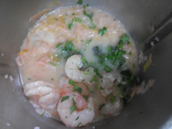 Una receta para fiestas y celebraciones, presentados individuales, conchas de merluza y gambas. Con Thermomix.