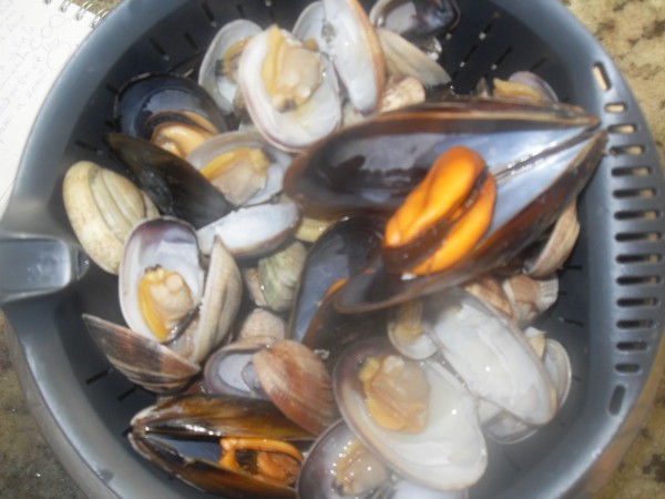 MEJILLONES Y ALMEJAS ENCIMA DENTRO DEL CESTILLO