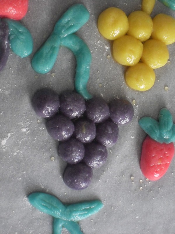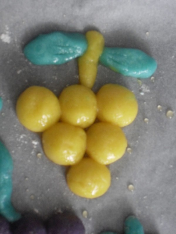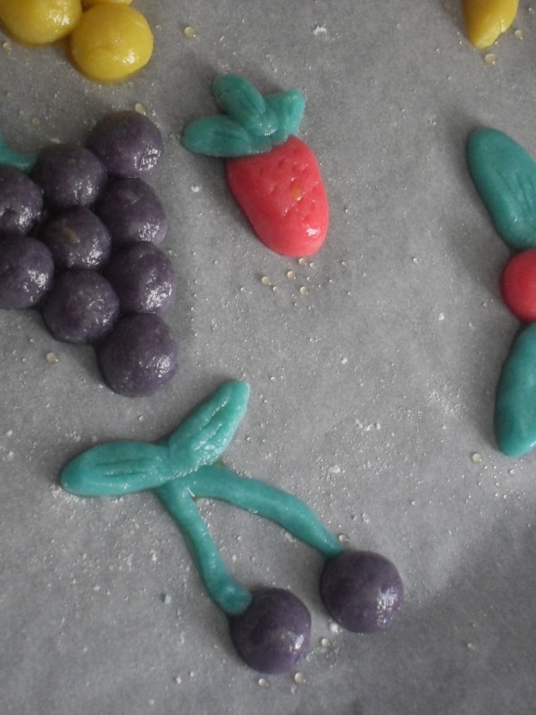 5-coger porciones y hacer las figuritas, pintar con un pincel, con agua y miel mezclados, para dar brillo y dejar secar.