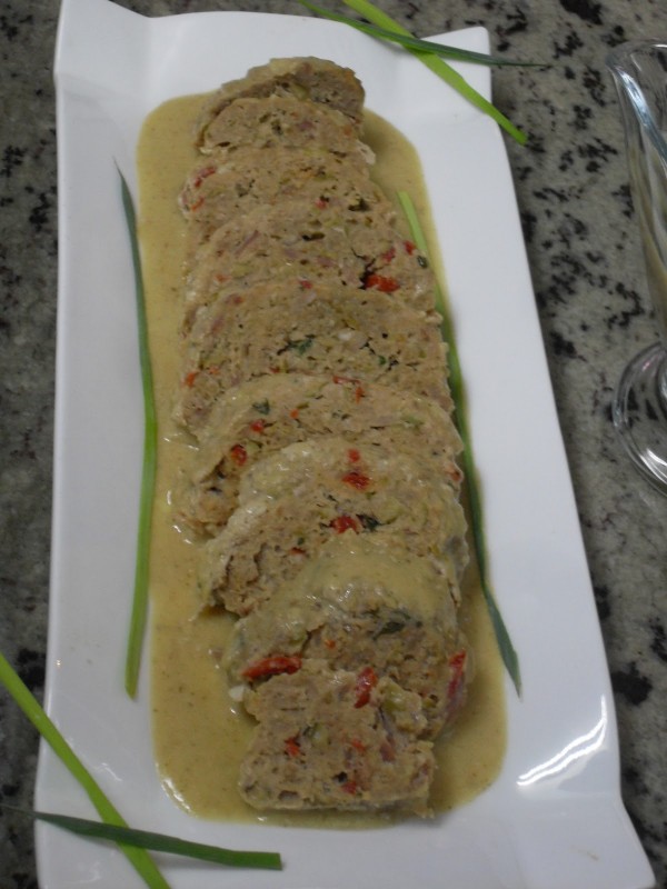 3-SACAR LOS ROLLOS A UNA OLLA, DARLES UN HERVOR, CORTAR EN RODAJAS LOS ROLLOS, Y SERVIR CON LA SALSA.