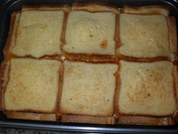 5-SIN LAVAR EL VASO, NATA, HUEVOS, LECHE ,SAL Y PIMIENTA, 10 SEG. VEL.4, VOLCAR SOBRE EL SÚPER SANDWICH. HORNO PRECALENTADO A 200º, UNOS 30 MINUTOS, HASTA QUE EL PAN TOME COLOR.