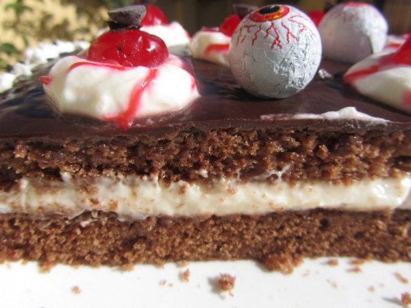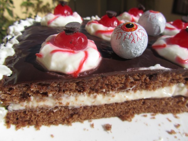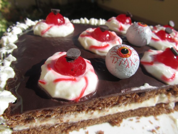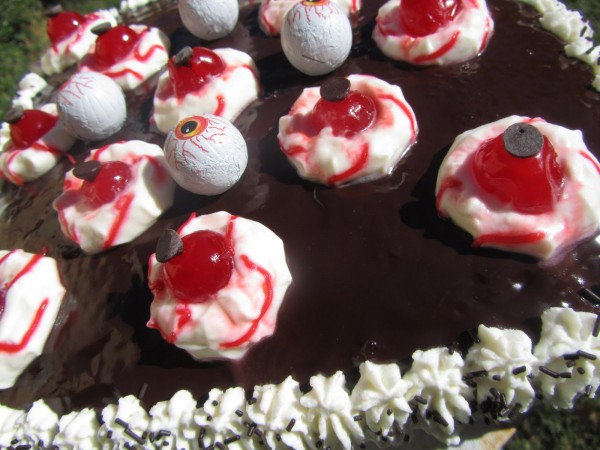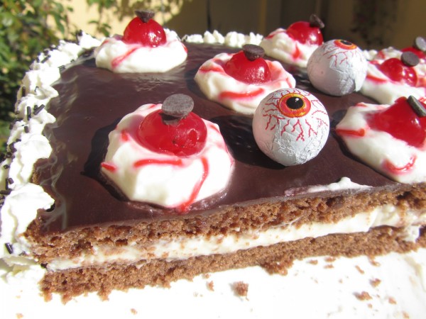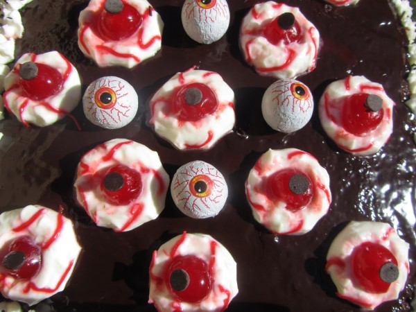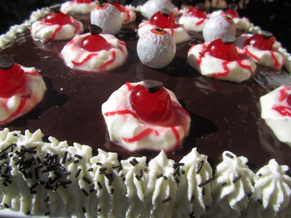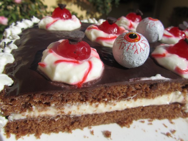 Una tarta de chocolate deliciosa, realmente terrorífica,jajaj, aunque podéis hacerla sin "ojos" , claro!