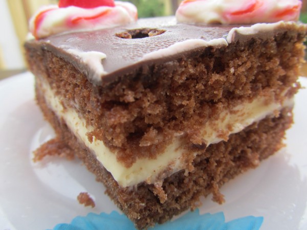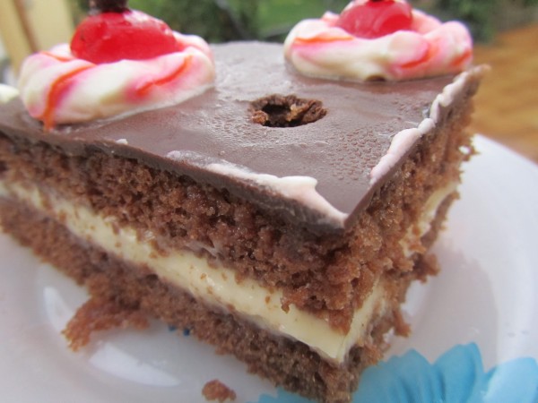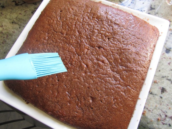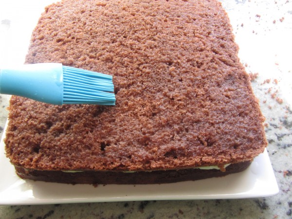 1- Cortar el bizcocho en dos, almibarar, (quizás os sobre un poco de almíbar), rellenar con la crema, tapar y almibarar.
