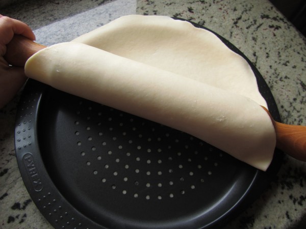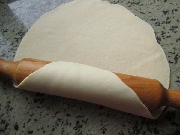la enrolláis un poco en el rodillo, así se transporta mejor a la bandeja
