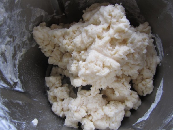 2- Añadir las dos clases de harina, huevo y sal, 2 min. Espiga.
