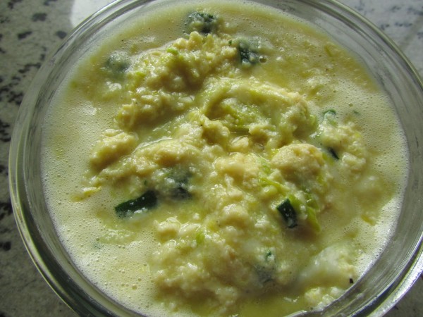 3- Agregar los huevos y la mozzarella, 10 seg. giro izda, vel.3. Cuajar un poco 2 min. 100º, giro izda, vel. cuchara. Dejar reposar 5 minutos con el vaso cerrado .Reservar en un bol.