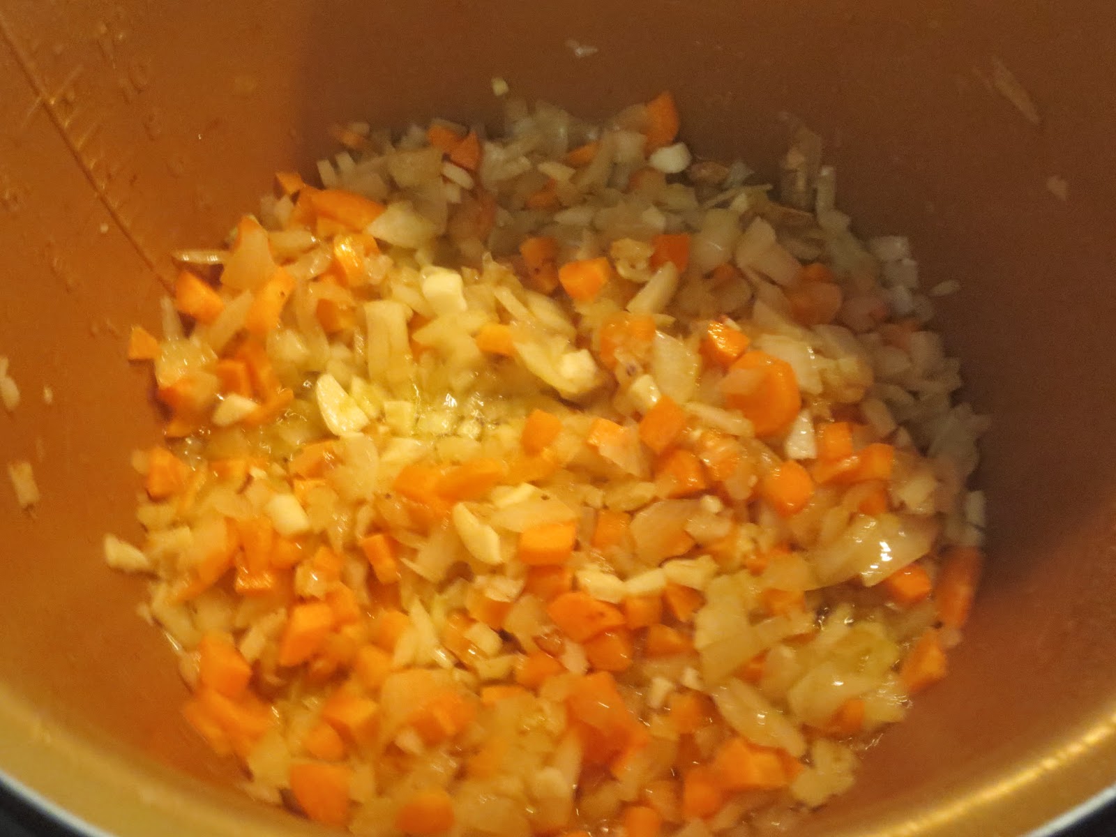 2- En ese mismo aceite, pochar la cebolla, ajos y zanahoria picaditos,