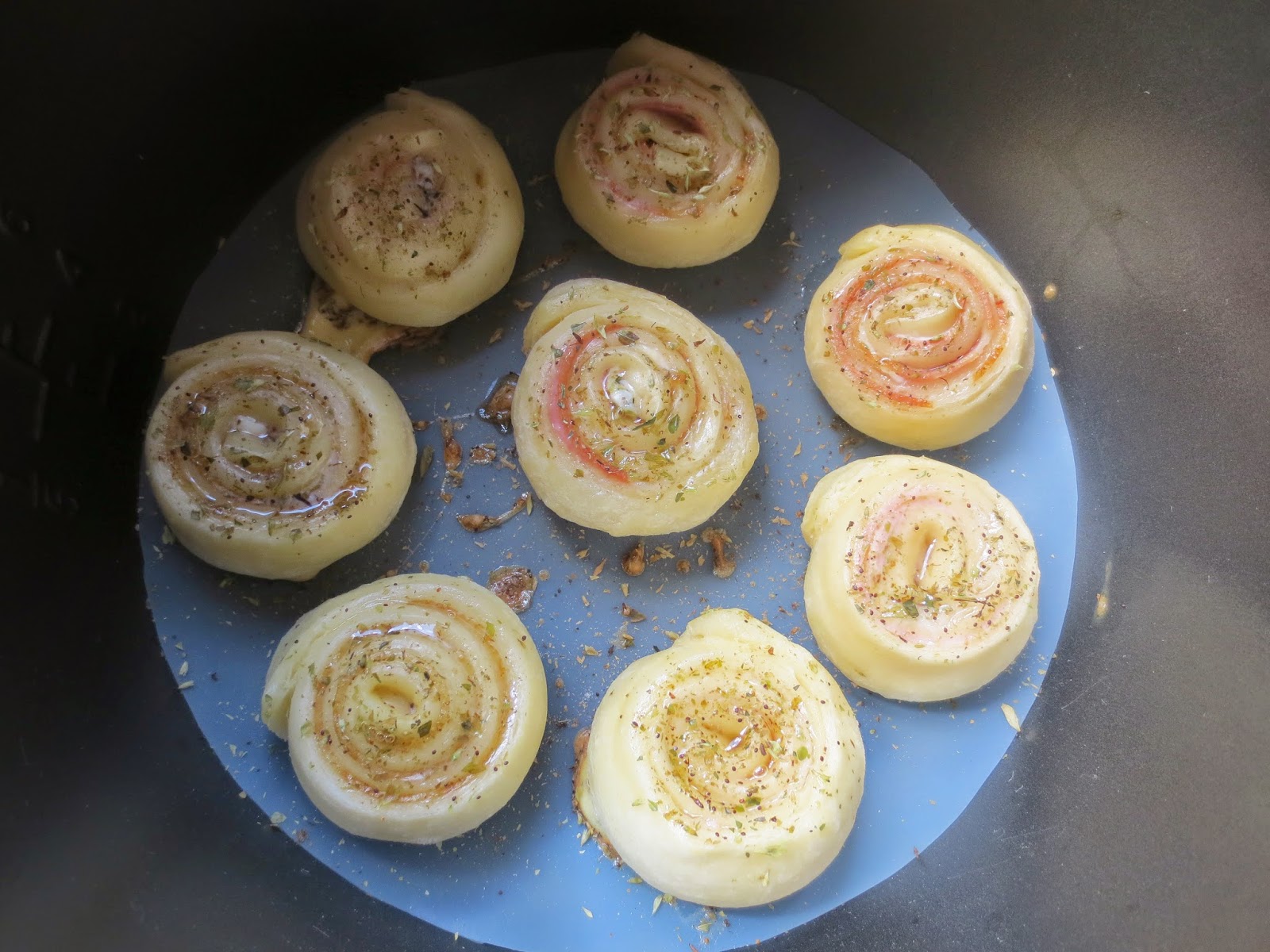 *Olla GM: Sobre una base de silicona o papel de hornear colocado en el fondo de la cubeta, posar los rulos, separados entre sí, pues crecen y se pegan unos con otros. Pintar con huevo un poco, espolvorear con orégano y válvula abierta, menú horno, 160º, 15 minutos. Cancelar menú y colocar el cabezal 5 minutos a 225º.
