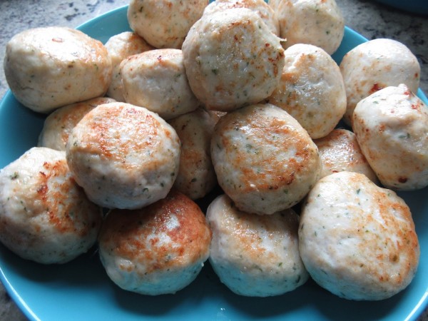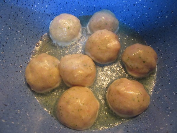 4- Formar las albóndigas untándonos las manos con un poco de aceite, e ir dorando solo por fuera con un poco de aceite en menú freír. Reservar.