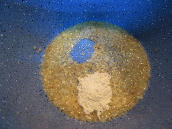 3- Añadir la harina, sofreir un minuto.