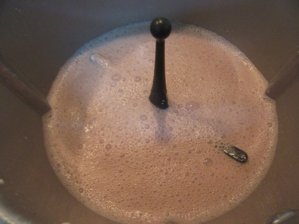 3- Colocar la mariposa, unos 12-14 min. 90º, vel.2. el tiempo depende de la temperatura de los ingredientes, si véis que están poco espesas, un poco más, misma velocidad y temperatura. Espesarán más al enfriar.