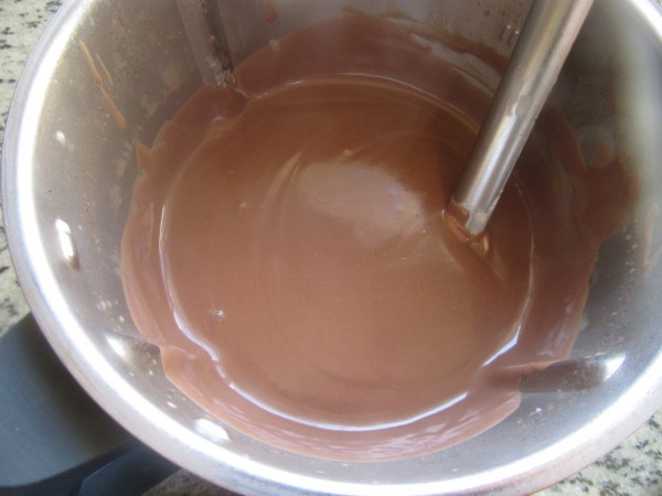 2- Resto de ingredientes al vaso, leche, huevos, azúcar, cacao a la taza, cacao puro, nata (75 gr.), vainilla y maizena, 10 seg. vel.6.
