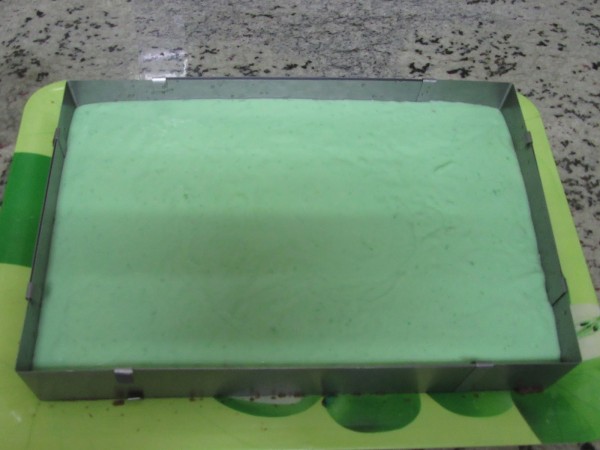 5- Volcar en un molde engrasado grande de unos 36x26 ó 38x25 y hornear (180º) 20-25 minutos. Dejar enfriar.