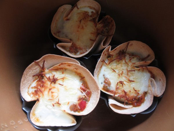 Preparación:1- Introducir las tortitas en 6 moldes o flaneritas. Colocar en la cubeta y hornear unos 10 min. menú horno 130º, simultáneamente con el cabezal, 8-10 minutos a 200º. En dos tandas. Sólo que los bordes comiencen a dorar. Guiaros por el tiempo del cabezal. Reservar.