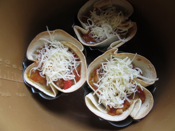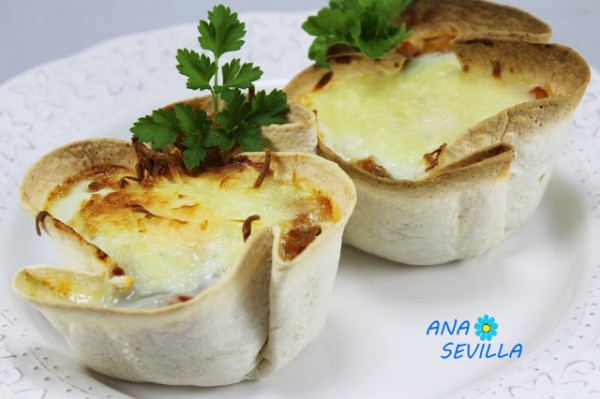 Preparación:1- Introducir las tortitas en 6 moldes o flaneritas. Colocar en la cubeta y hornear unos 10 min. menú horno 130º, simultáneamente con el cabezal, 8-10 minutos a 200º. En dos tandas. Sólo que los bordes comiencen a dorar. Guiaros por el tiempo del cabezal. Reservar.