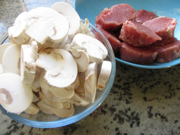 Cortar y salpimentar el solomillo y laminar los champiñones