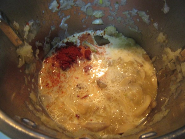 5- Pimentón, 1/2 pastilla y la leche ideal, 4 min. 90º, giro izda, vel. 1.