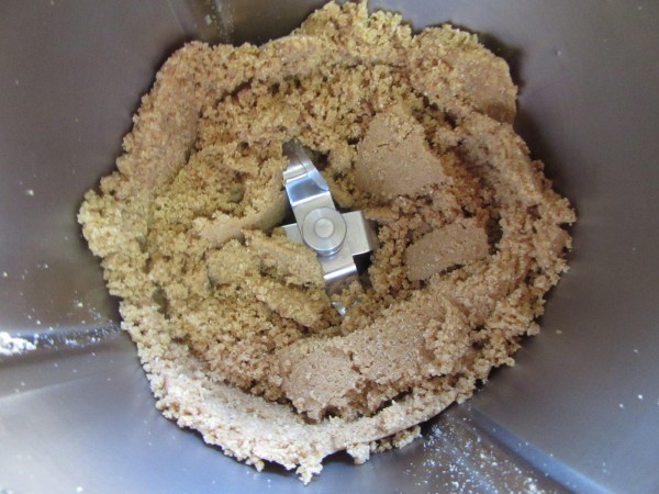1- Moler las galletas con golpes de turbo. Añadir la mantequilla y ralladura de limón, 10 seg. vel.6.