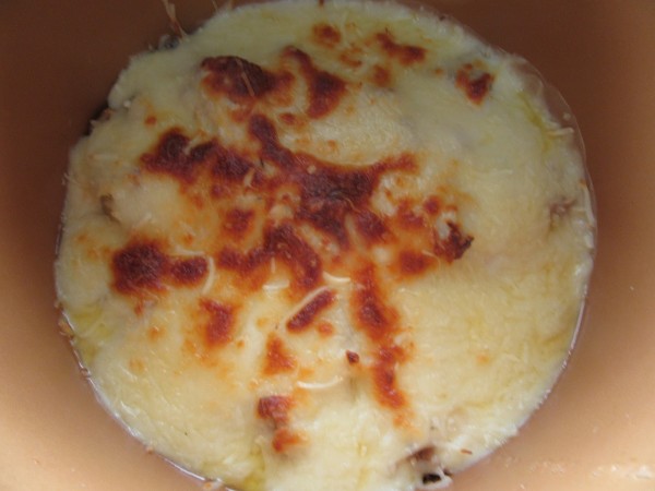 4- Despresurizar y remover enérgicamente con varillas. Volcar sobre la coliflor con el atún, espolvorear queso rallado y colocar el cabezal unos 10 minutos a 200º hasta que tome color.