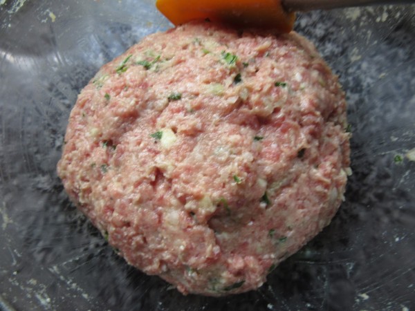 1- Picar los ajos, perejil y cebolla muy menudos. Añadir el huevo, pan rallado, leche, aceite, sal y pimienta. Unir y mezclar bien con la carne.