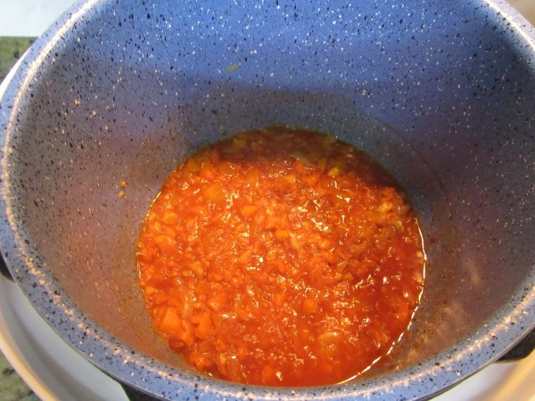 4- Agregar el tomate, sofreír 2-3 minutos.