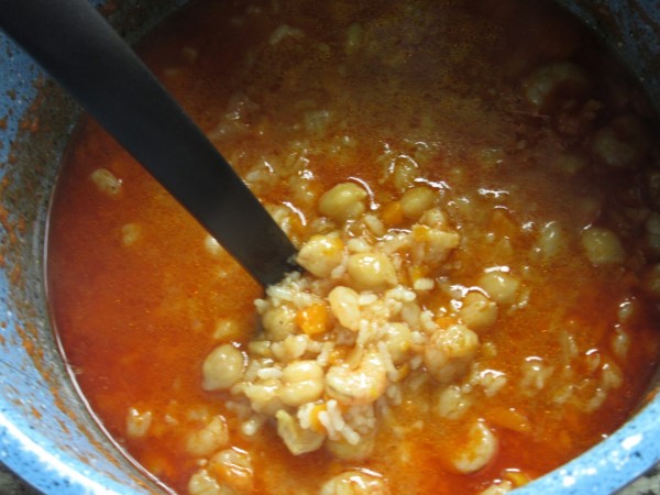 Garbanzos con gambas y arroz olla GM.