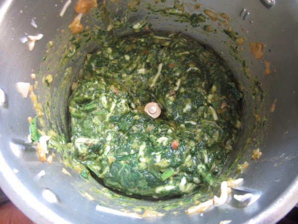 1- Colocar las espinacas en el fondo del varoma. Reservar. (Yo le pongo un peso en la tapa del varoma para que cierre bien).