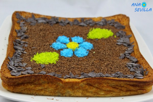 2- Abrir, colocar el cabezal unos 10-15 minutos 200º, que tome un poco de color, dejar que enfríe, desmoldar y espolvorear con chocolate rallado.