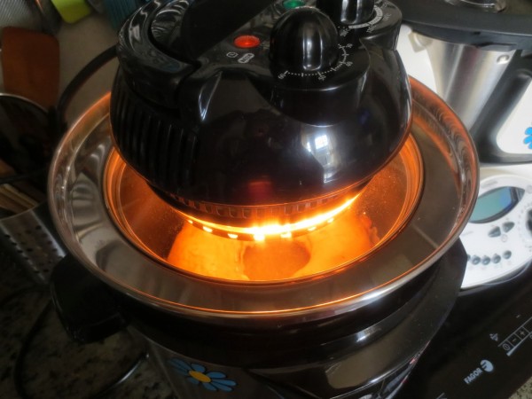 3- Sacar la rosca del molde, dar la vuelta, pincelar con aceite, y dorar con el cabezal unos 10 minutos a 200º.