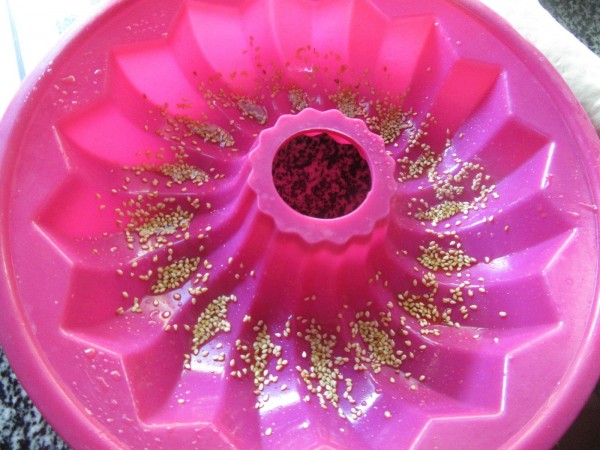 Engrasar un poco el molde y espolvorear semillitas si queréis