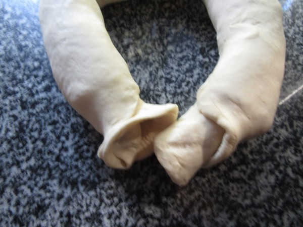 En las puntas someter una dentro de otra y pellizcar la masa apretándola para que quede bien sellada