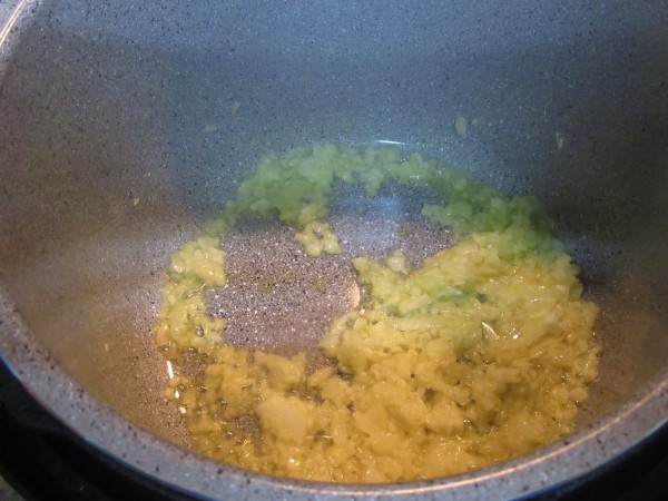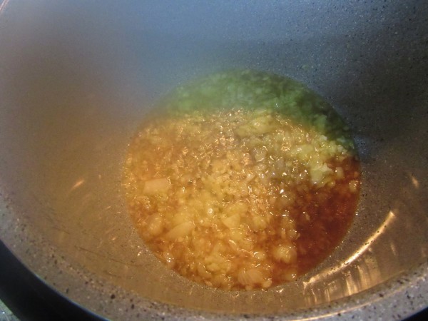 2- Picar la cebolla y ajos menudos y sofreír con un poco de aceite, hasta que esté blando.