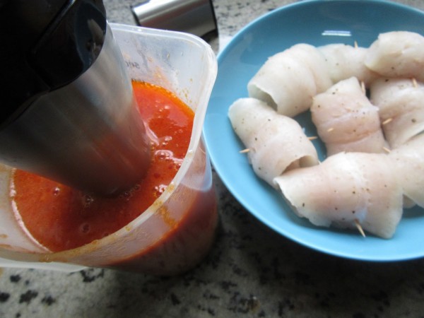 Preparación:1- Salpimentar los filetes y enrollar, cerrar con palillos.. Reservar.