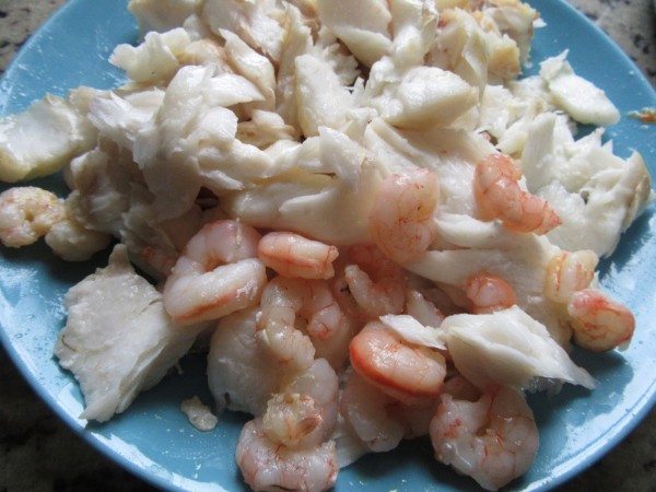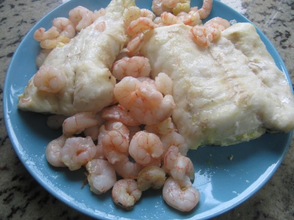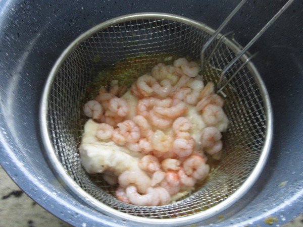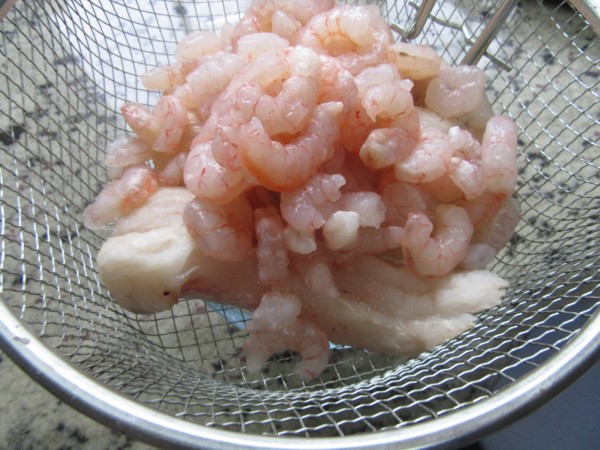Preparación:1- Colocar la merluza y encima las gambas peladas en un cestillo o vaporera, reservar.