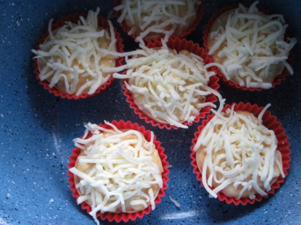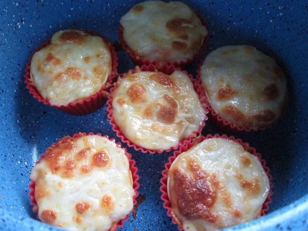 6- Colocar las obleas en los moldes, rellenar, espolvorear con queso rallado, y simultáneamente menú horno 130º , 15 minutos y el cabezal a 200º, unos 10-15 minutos, hasta que tome color. Guiaros por el tiempo del cabezal.