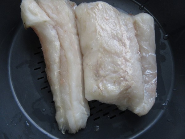 1- Colocar la merluza y encima las gambas peladas, en el fondo del varoma. Reservar.